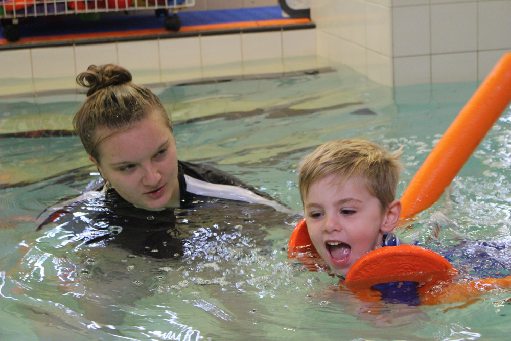 Young child in a swimming lesson